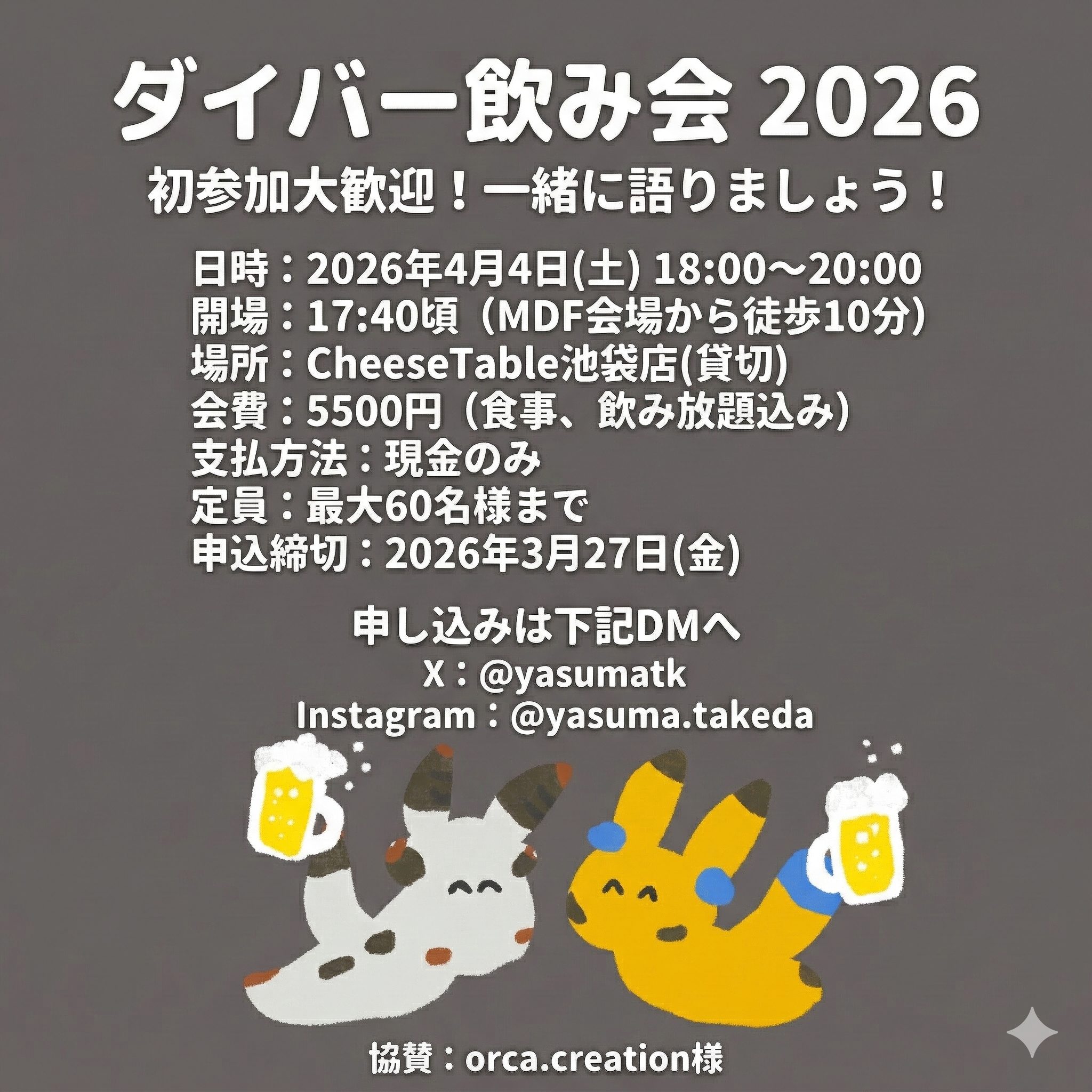 参加したい!という方は、幹事であるやすまさんのSNSアカウントにDMにて参加希望の旨ご連絡ください。XかインスタのどちらかでOKです。