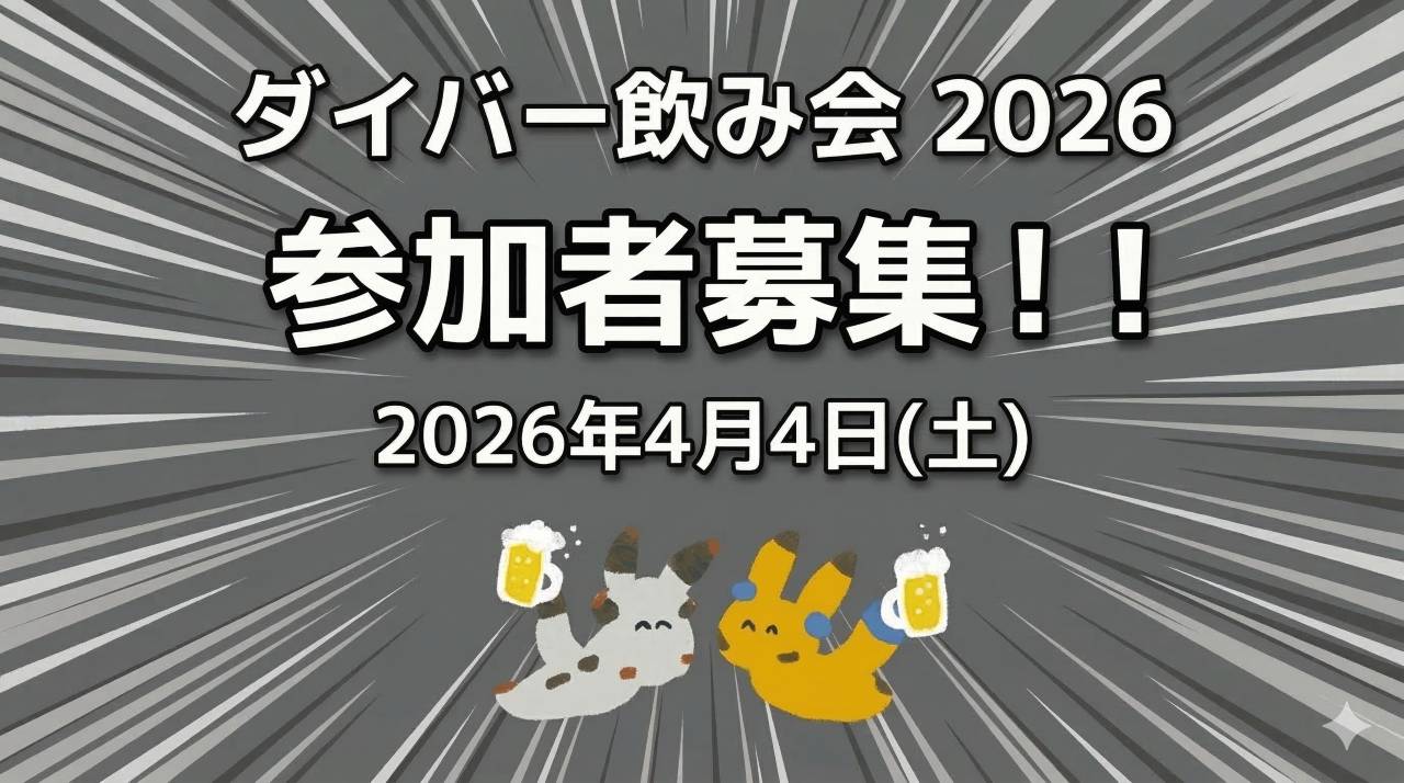 が!今年はやすまさん(@yasumatk)が幹事となってダイバー飲み会をやっぱり開催できる形となりました!やすまさんに感謝!!!